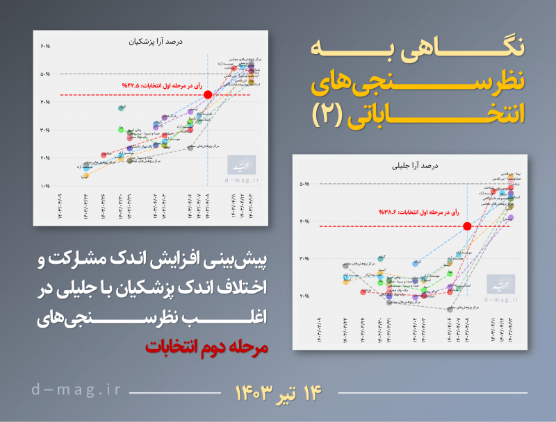 نتایج آخرین نظرسنجیها تا ۱۴ تیر ۱۴۰۳ (ساعت ۲۱)