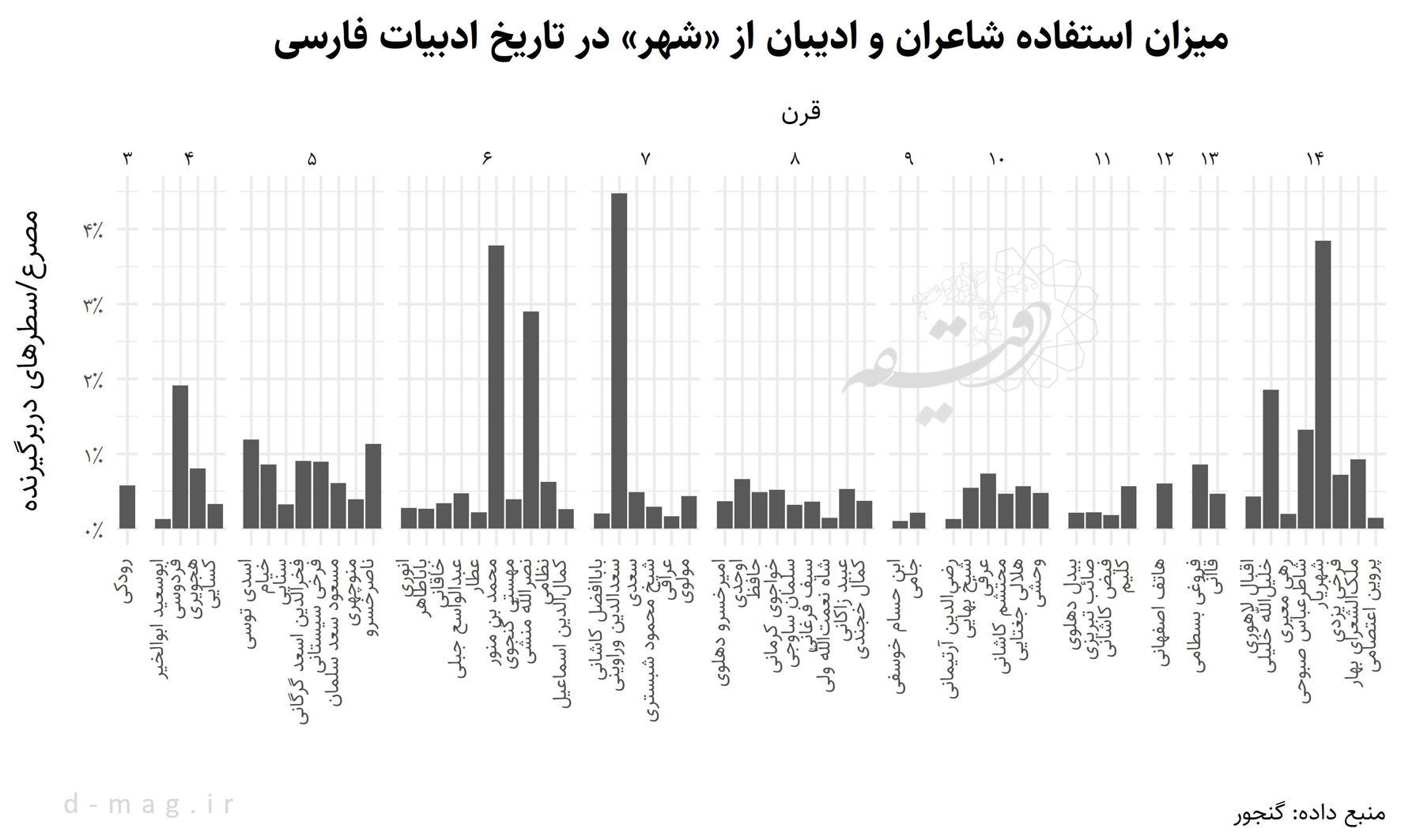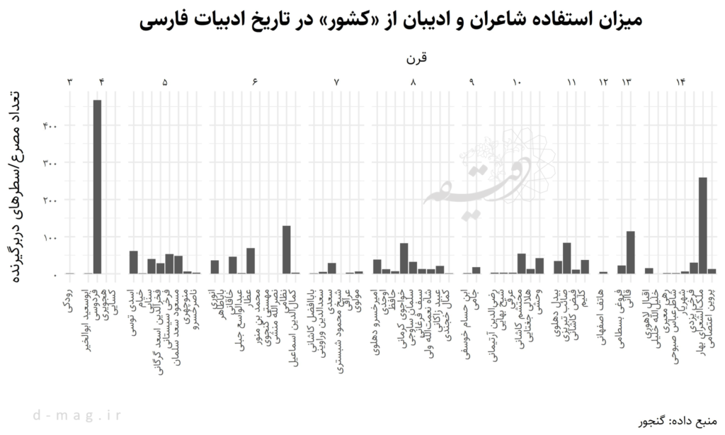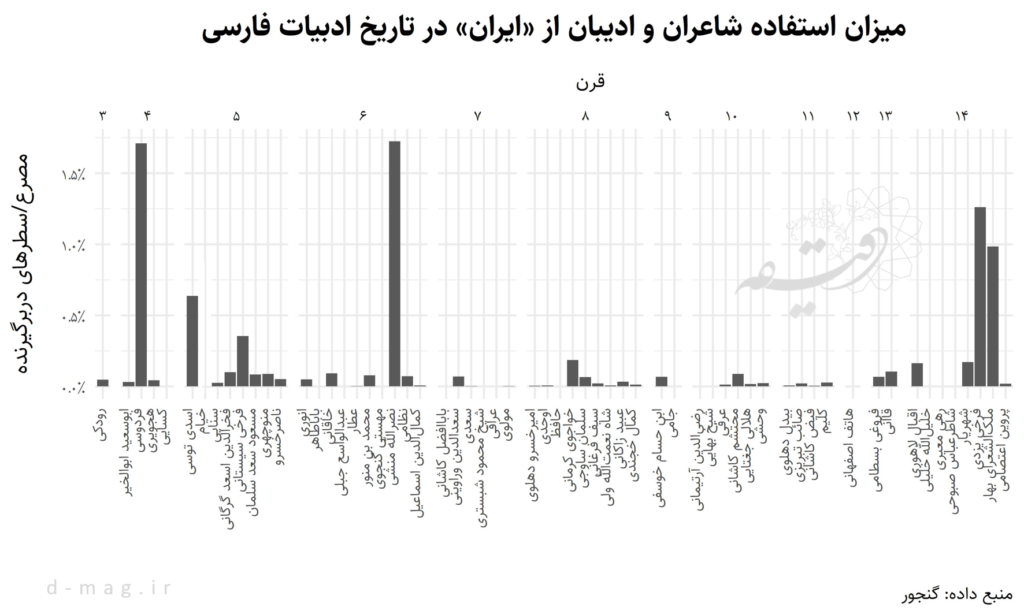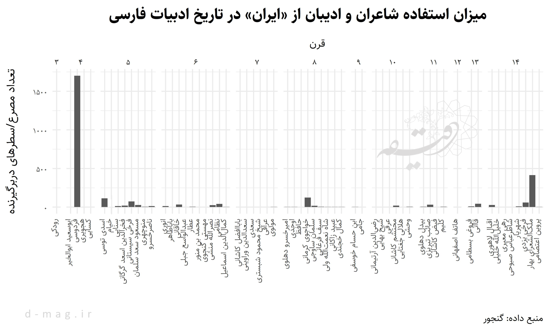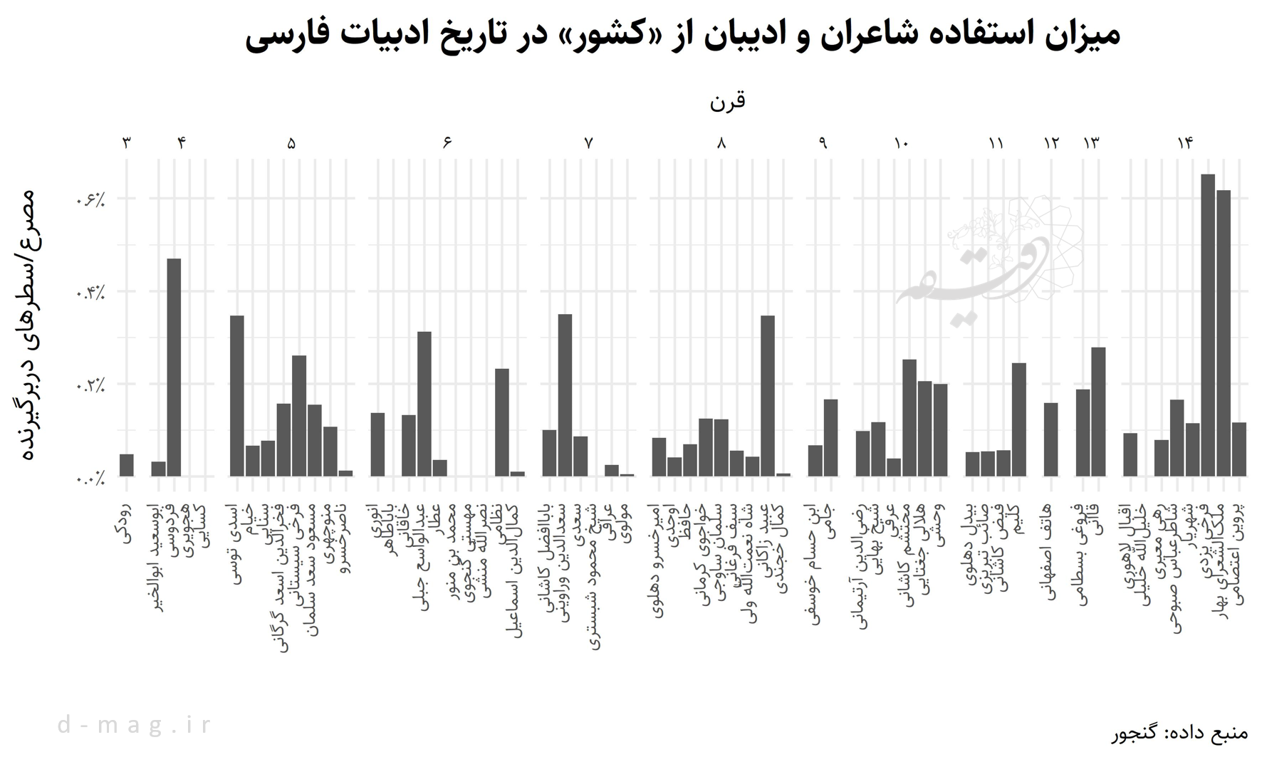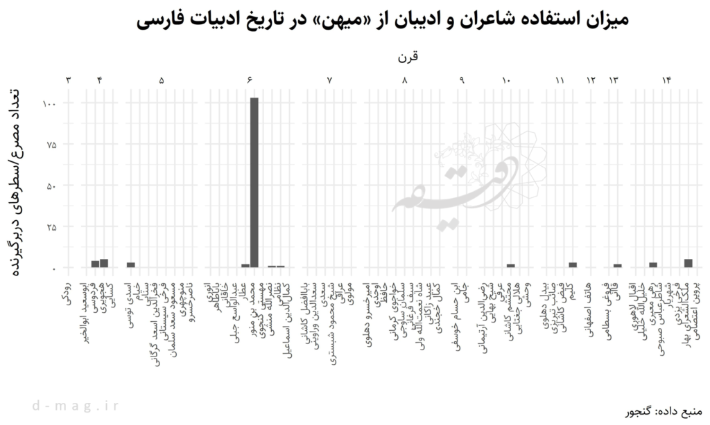 فراوانی استفاده از «وطن» در آثار شاعران کلاسیک و ادیبان