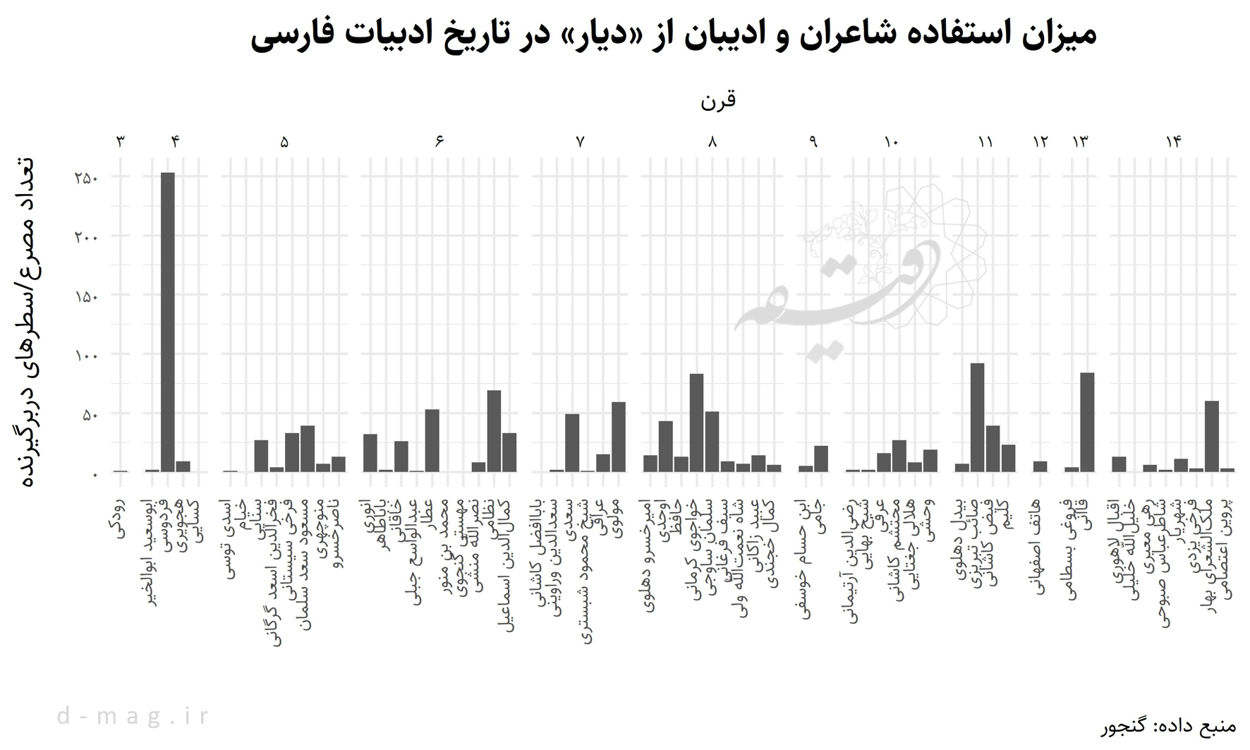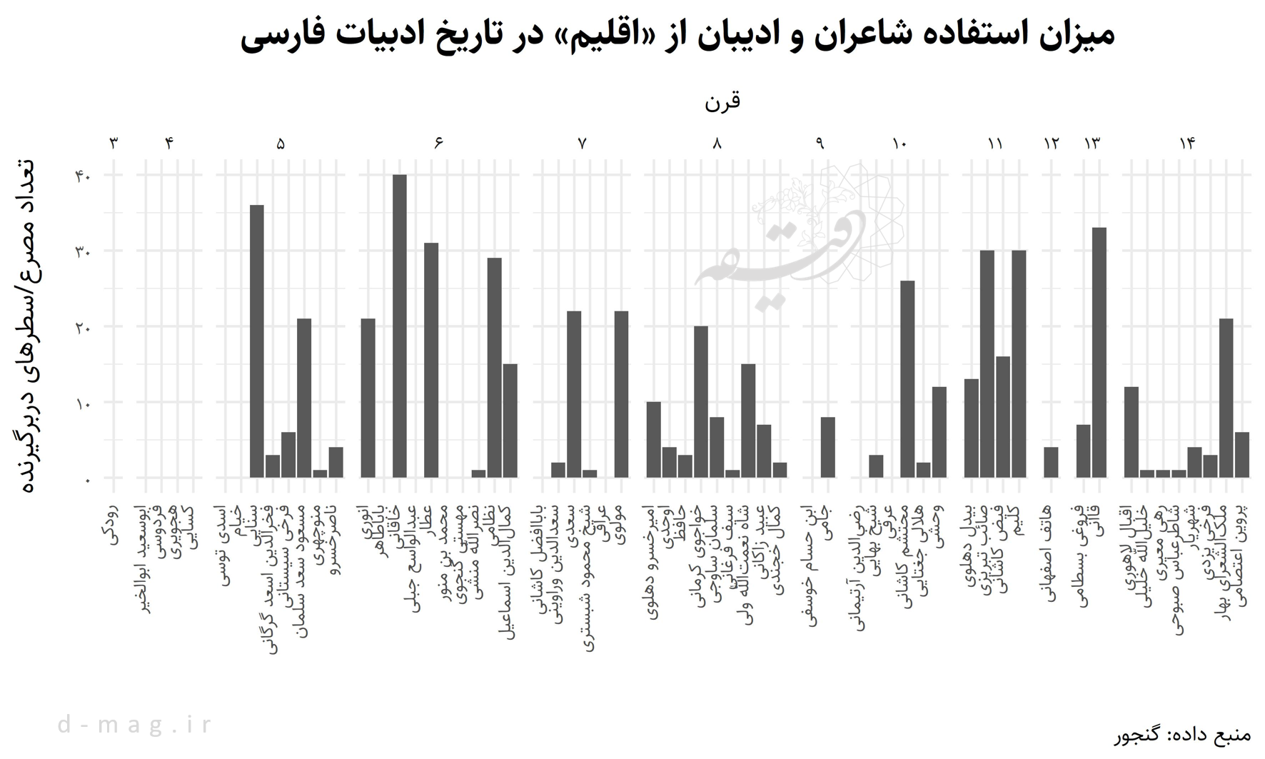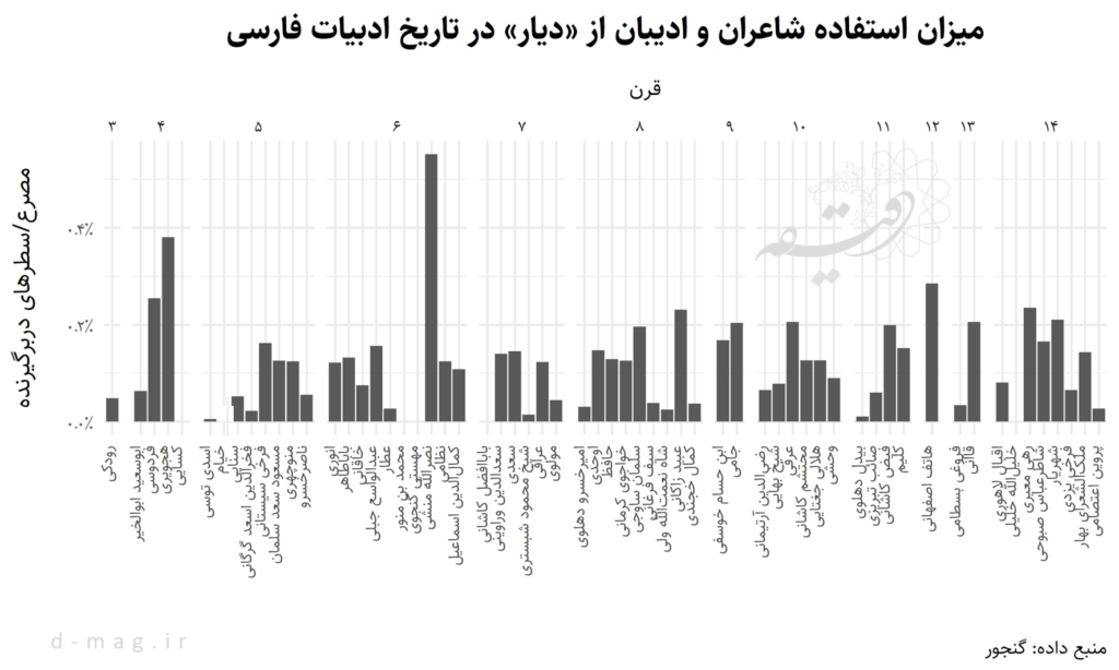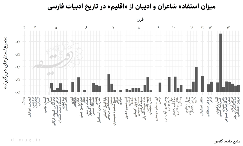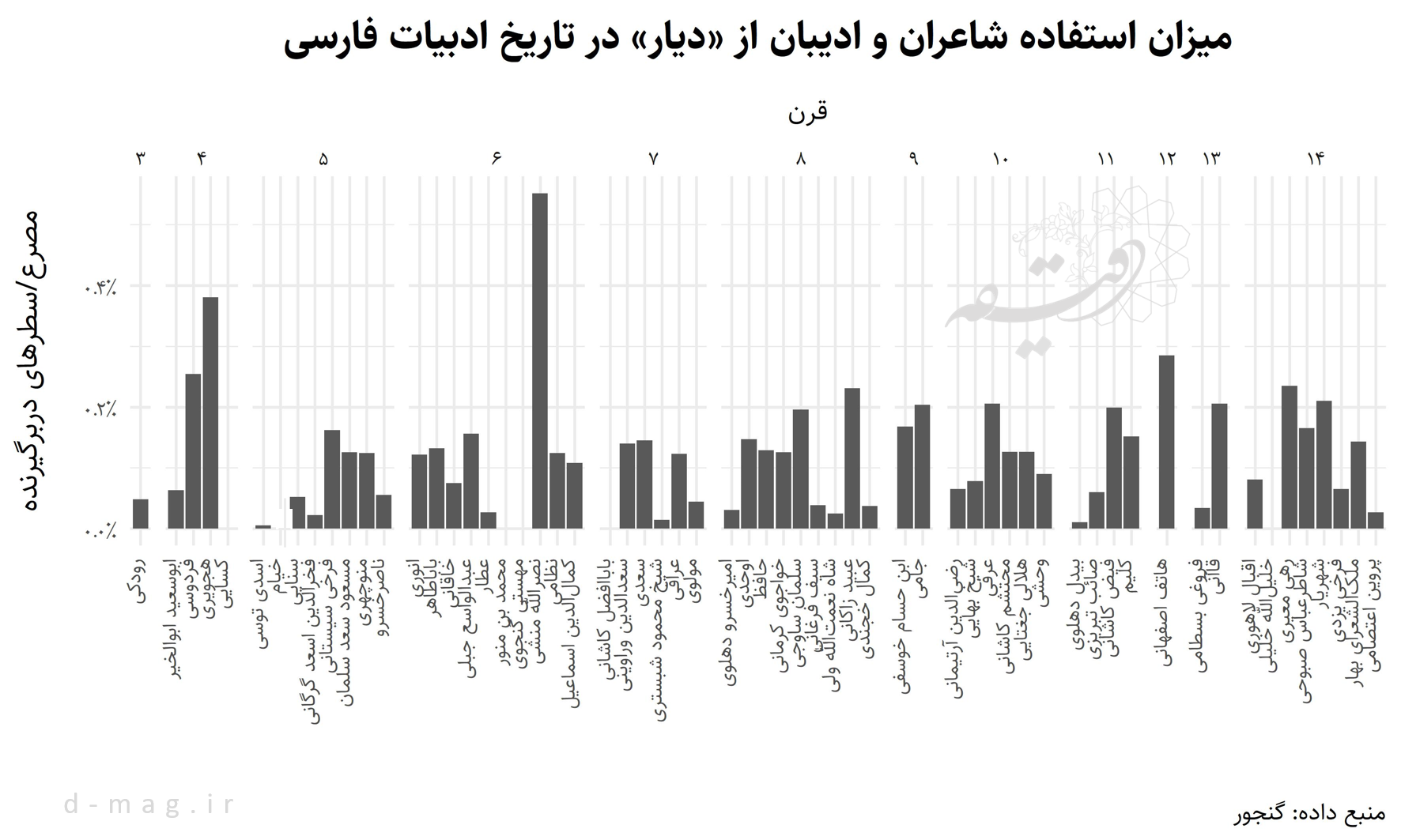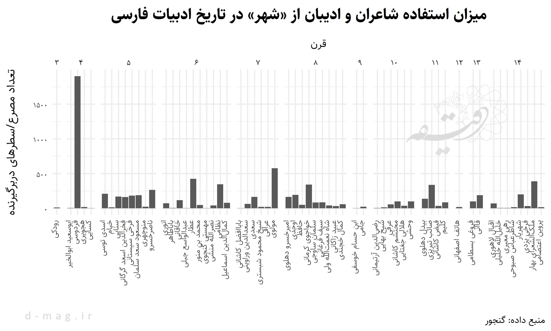فراوانی استفاده از «وطن» در آثار شاعران کلاسیک و ادیبان