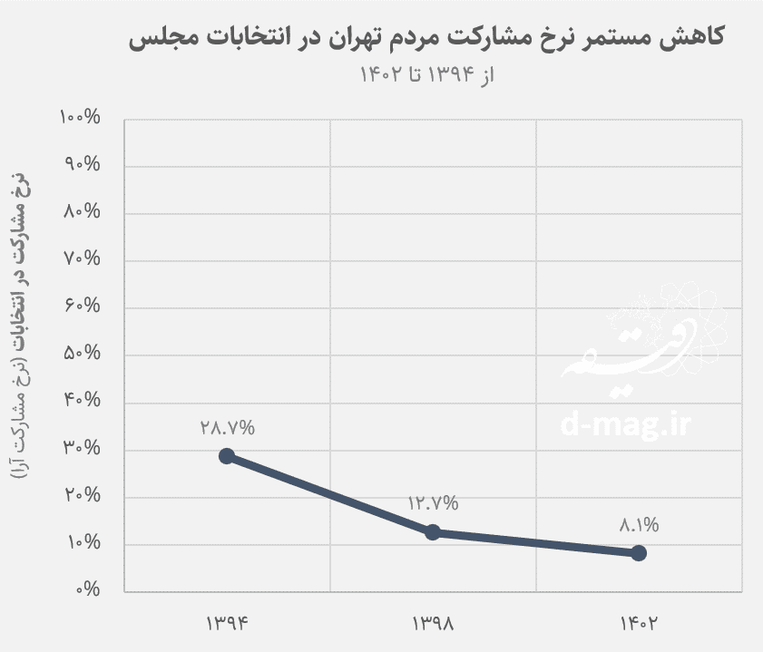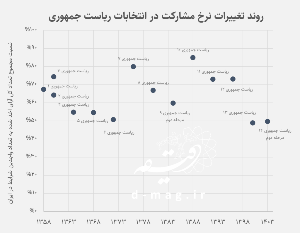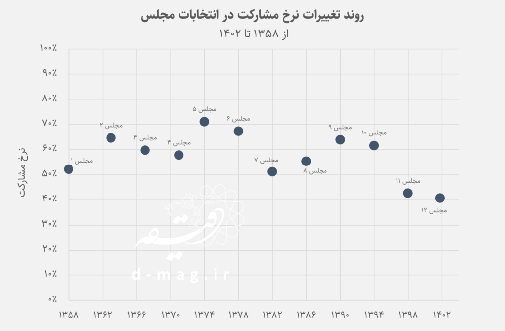 [۳۲] شاخص «نرخ مشارکت موثر» به جای شمارش صفر و یکی واجدین شرایط بر اساس حضور یا عدم حضورشان در انتخابات، میزان مشارکت را بر اساس تعداد نمایندگانی که در برگه رأی وارد میشود، محاسبه میکند. برای کسب اطلاعات بیشتر درباره نرخ مشارکت موثر نگاه کنید به: مشارکت موثر و سیاستمدار بیاثر، محمدجواد شاکر آرانی، علیرضا کدیور، مجله تحلیلی دقیقه، فروردین ۱۴۰۳ (+)
