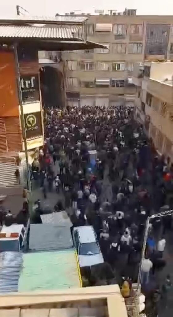 اعتراضات دی ۱۴۰۴ پس از افزایش شدید قیمت دلار آغاز شد و به همین خاطر از افزایش قیمت دلار به عنوان تکانه اولیه یاد میشود. این تصویر نمای ورودی بازار چارسو واقع در تقاطع خیابان حافظ و جمهوری در مرکز شهر تهران در نخستین روزهای اعتراضات است. بازار چارسو مثل پاساژ علاءالدین برخی از پاساژهای مجاور خود محل استقرار موبایلفروشهاست. فروشندگان لوازم الکترونیک وارداتی مثل موبایل در بازار تهران، جزو نخستین گروههایی بودند که با افزایش قیمت ارز دست به اعتراض زدند[۱].
